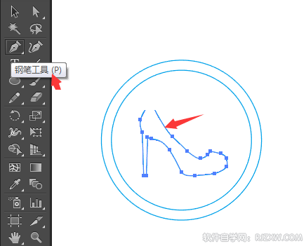 第3步、然后再使用钢笔工具,然后再绘制一个高跟鞋的图形。