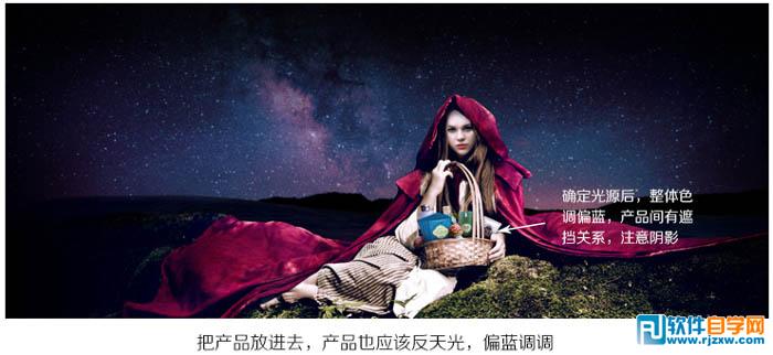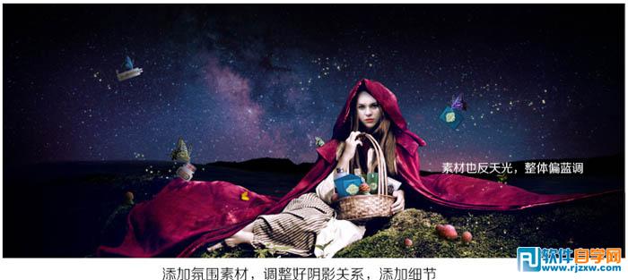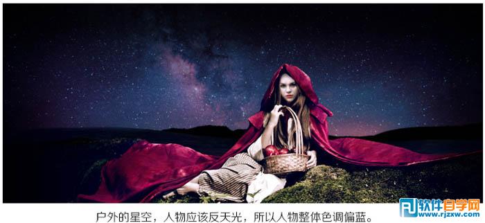 | 8、户外的星空,人物应该反天光,所以人物整体色调偏蓝。 |