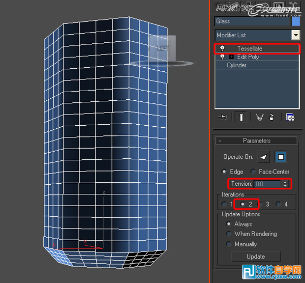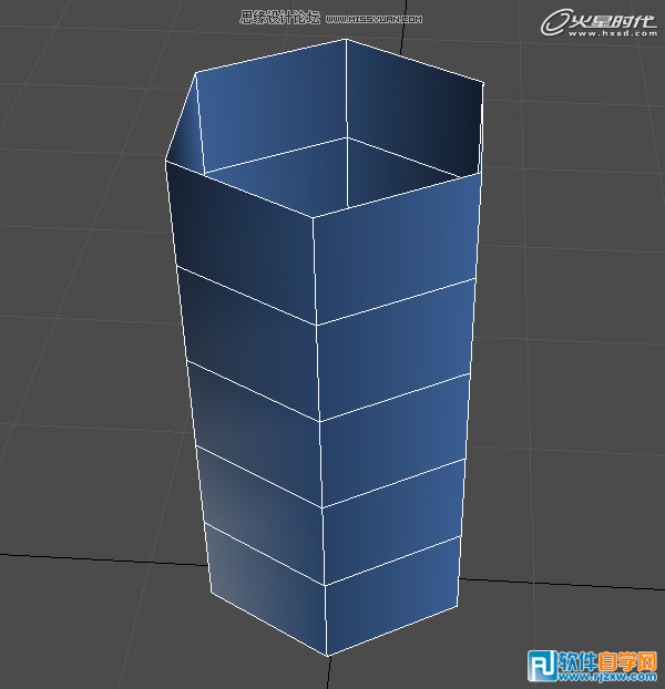 创建一个圆柱,命名为Glass。设置Radius为7,Height为30,Sides为6。(图01)