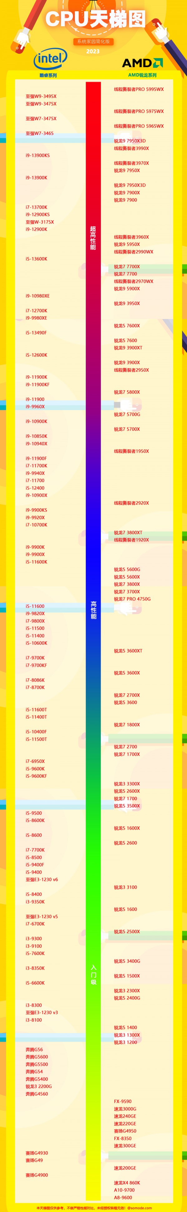 2023年最新cpu天梯图7月高清大图详情: