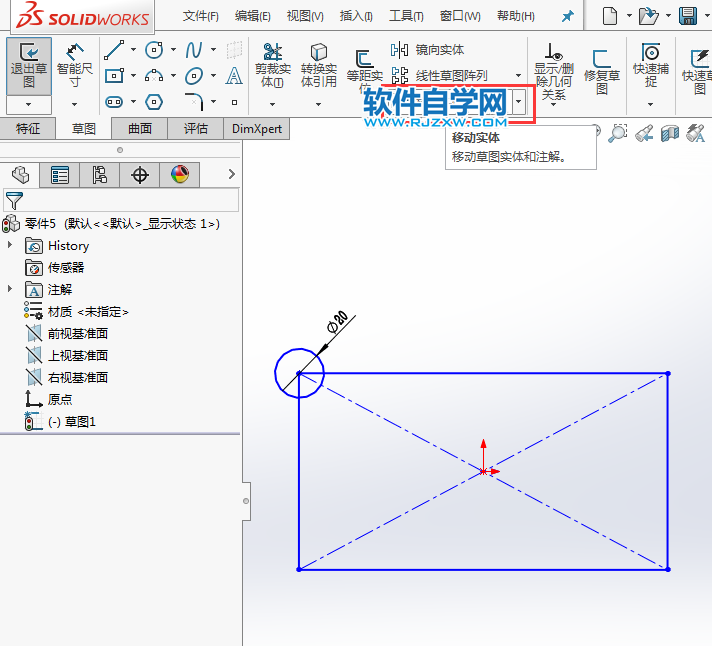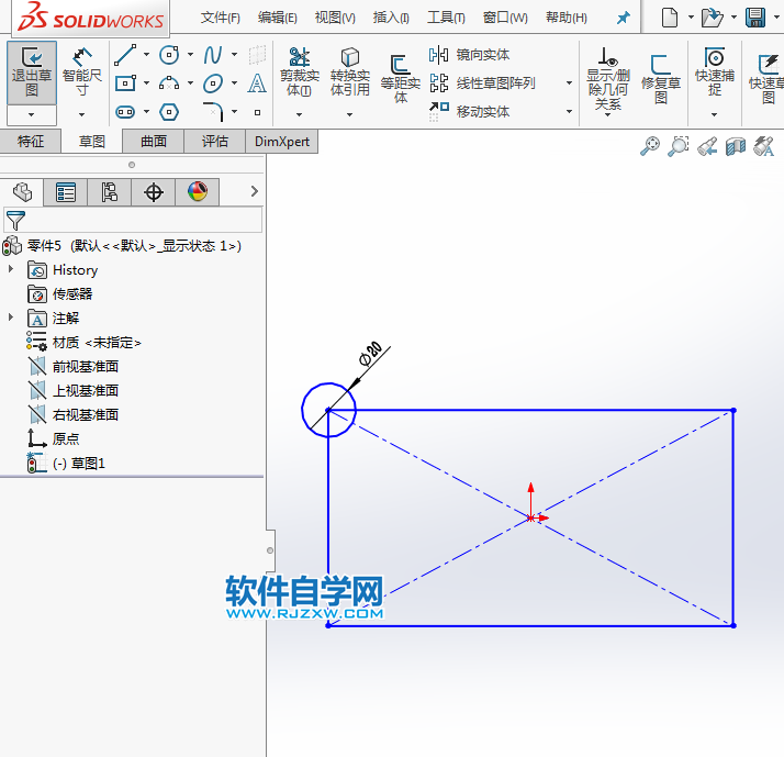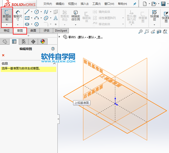 2、点击草图选项,点击草图绘制,选上视基准面,效果如下: