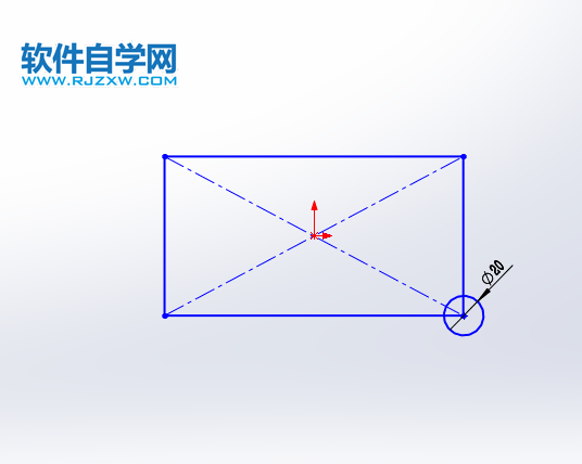 3、然后绘制一个150x80mm的矩形出来,还有一个直径20的小圆出来,效果如下: