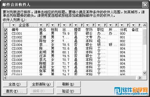 (6)单击按钮,进入到存放数据源的位置选择数据源,单击“确定”按钮弹出“邮件合并收件人”对话框,如图5-8 所示。