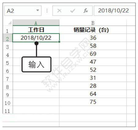 1、输入起始数据。打开原始文件,在单元格A2中输入日期“2018/10/22”,如图所示。