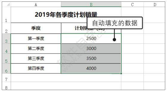 4、查看填充序列后的数据。返回工作簿窗口,此时可在单元格区域B3:B6中看到填充序列后的数据,如图所示。