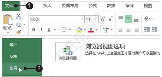 1、单击“选项”命令。打开原始文件,单击“文件”按钮,在弹出的菜单中单击“选项”命令,如图所示。