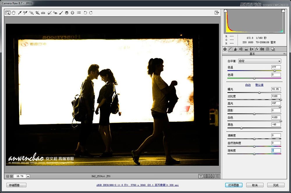 调节画面的光线和色温(调节光线让画面中灯箱的光线从内至外,给人溢光的感觉,也让画面变干净。)