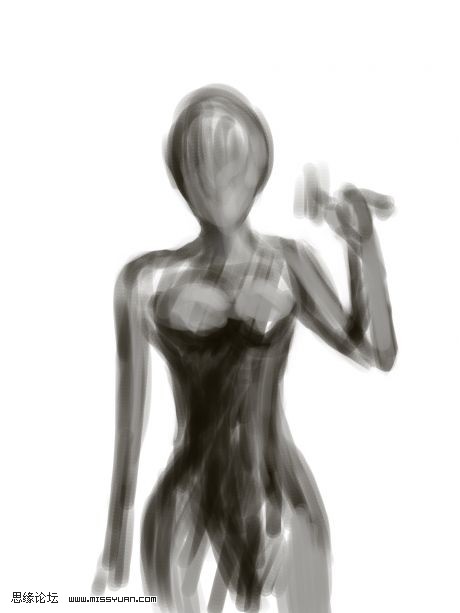 | 1、先从整体出发,用色块把人物的姿势大概的表现出来,用黑白灰体现出明暗关系。这个过程需要快速果断,不要考虑细节。.只须把脑海中的画面尽可能表现准确就行了。 |