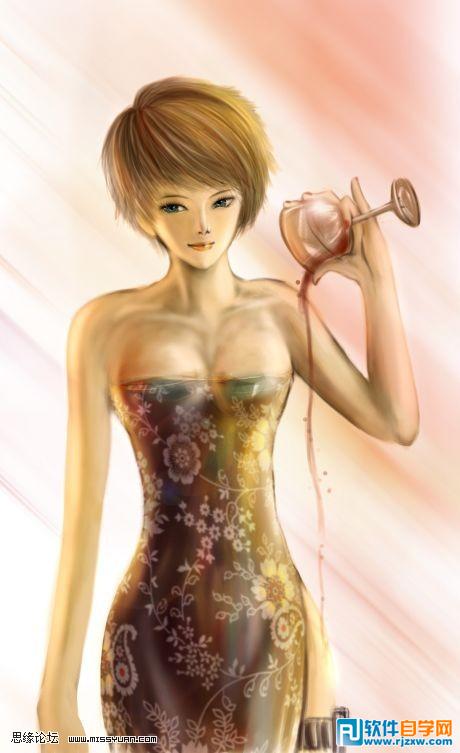 | 5、好啦,这下可以耐心地进行细画了,转用PS中的300号柔边笔刷,让笔触过渡自然更细腻。当然19号笔刷也是少不了的。 |
