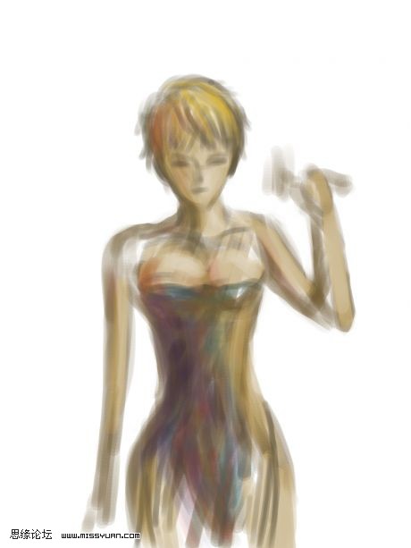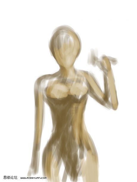 | 3、大致勾出人物的五官和身体轮廓,一样也不需要细节,这一步只要把人物整体的感觉表现出来。 |