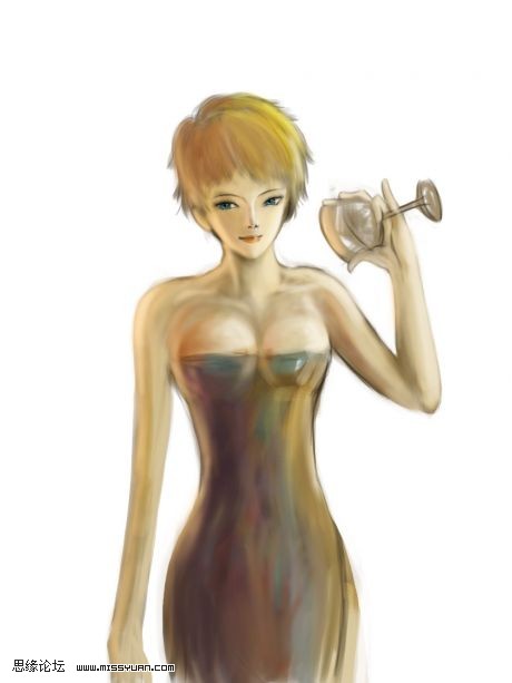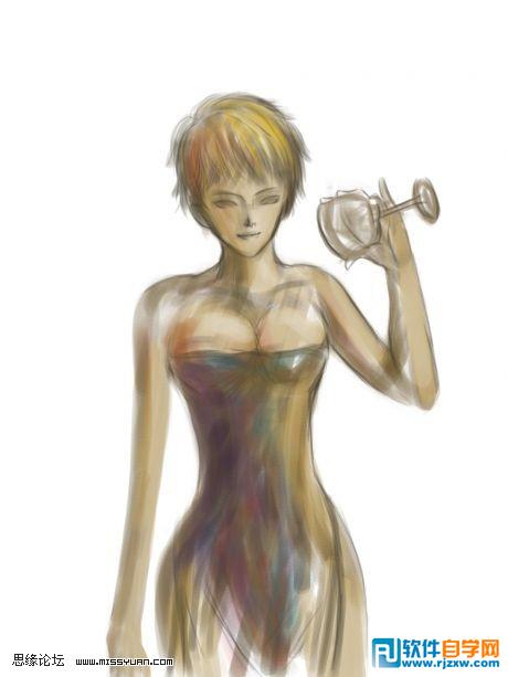 | 4、接下来进一步细画,因为打好了轮廓,细画了很简单,很有条理。切忌打稿过程不要过于拘泥细节,从整体出发很重要!以上全是PS中的19号笔刷完成。 |