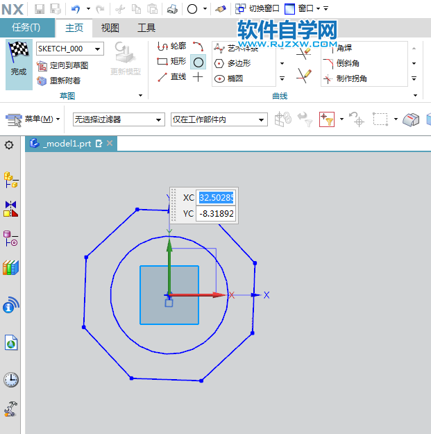 4、然后绘制下面草图出来,点击完成,效果如下: