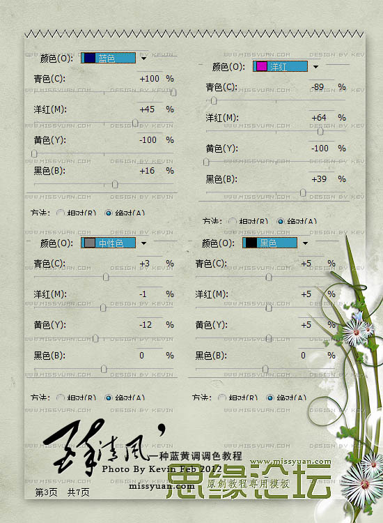 二、左后执行在这层涂上执行:图像 > 调整 > 可选颜色,选择黄:数值:0/0/-22/0,勾选绝对,先稍微降一些黄色。