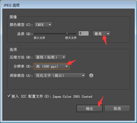 第5步、如果你品质你设置为最高,分辨率为高(300 ppi)的话。