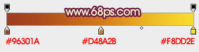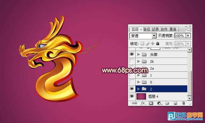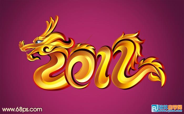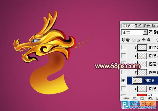 | 3、龙头部分我们已经完成。现在开始制作“2”字。新建一个组,自己命名。 在组里新建一个图层,用钢笔勾出“2”的轮廓路径,转为选区后选择渐变工具,颜色设置如图5,拉出图6所示的线性渐变。顶部的暗部需要用加深工具稍微加深一下,效果如图6。  |