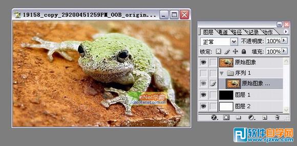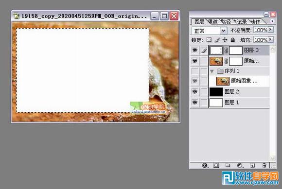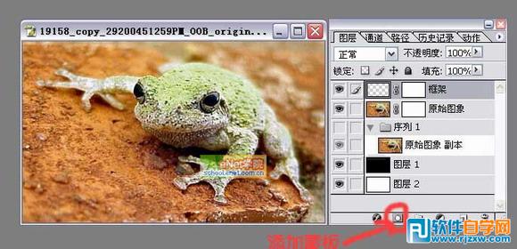 | 2、我这里用到了2个背景图层一个黑色和一个白色,这是为了以后使用蒙版的时候修改起来回比较的方便,呆会你就回知道它的好处了。下一步,在“原始图象”图层上,建立一个名为“框架”的图层。并对“原始图象”和“框架”各添加一个图层蒙板,图层的设置到着基本上就结束了。 |