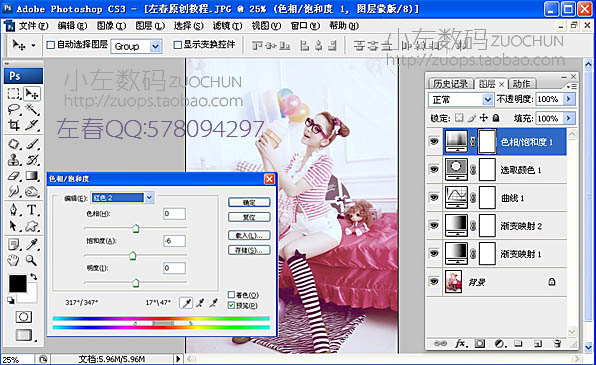 五、创建色相饱和度调整图层,选择红色用吸管吸取图片红色再调整,饱和度-6。
