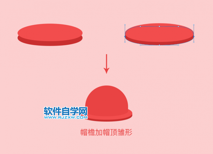 3、绘制一个194*64的椭圆,填充颜色#f24d4d,复制一层作为厚度部分放在底层,改变颜色为#c92f2f,调整下左右的锚点,使其看起来更自然。