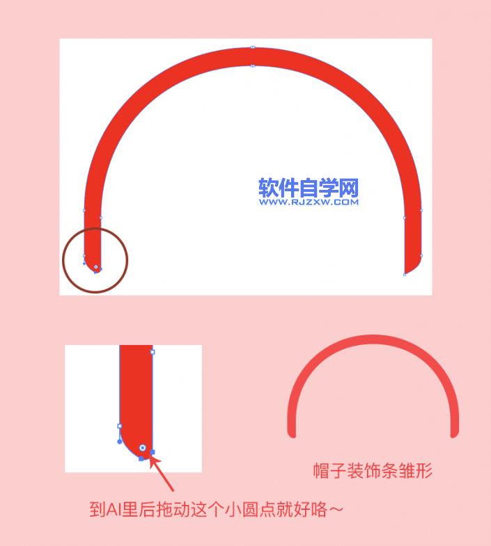 5、做好了布尔运算的装饰条,边角还是有点尖锐。这时最方便的做法就是将装饰条复制到AI里,可以直接将尖角拖成圆角。