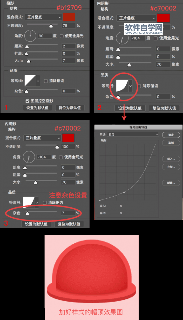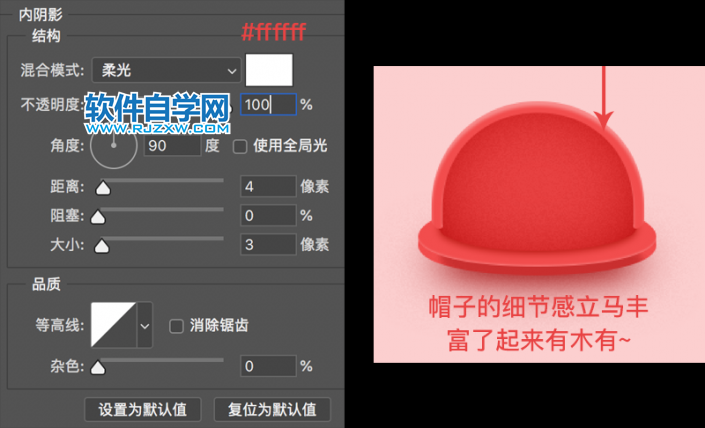9、接下来给帽檐加图层样式,阴影加点杂色的话更有质感哦~