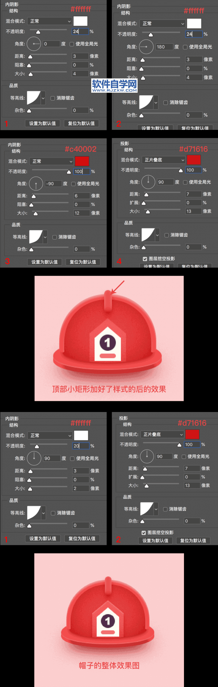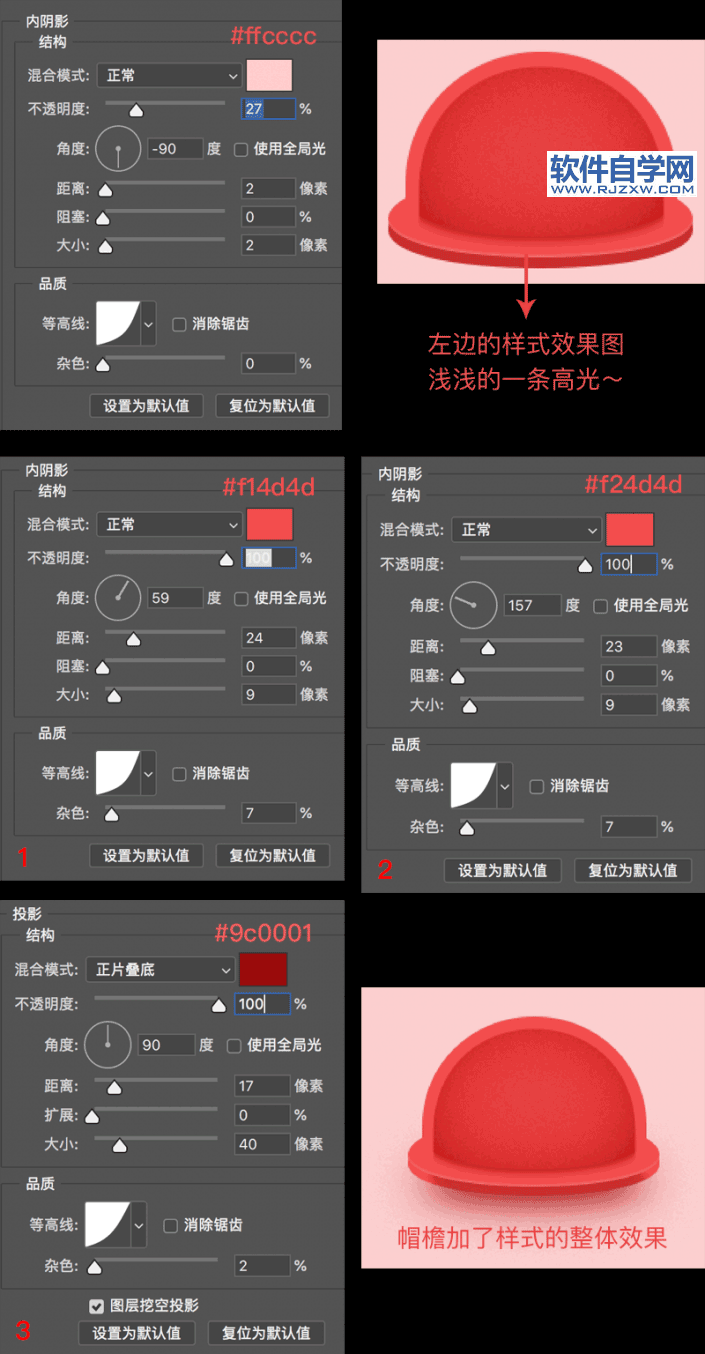 8、雏形做好了后就可以开始加图层样式啦~先给帽顶加样式。