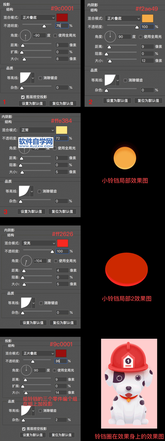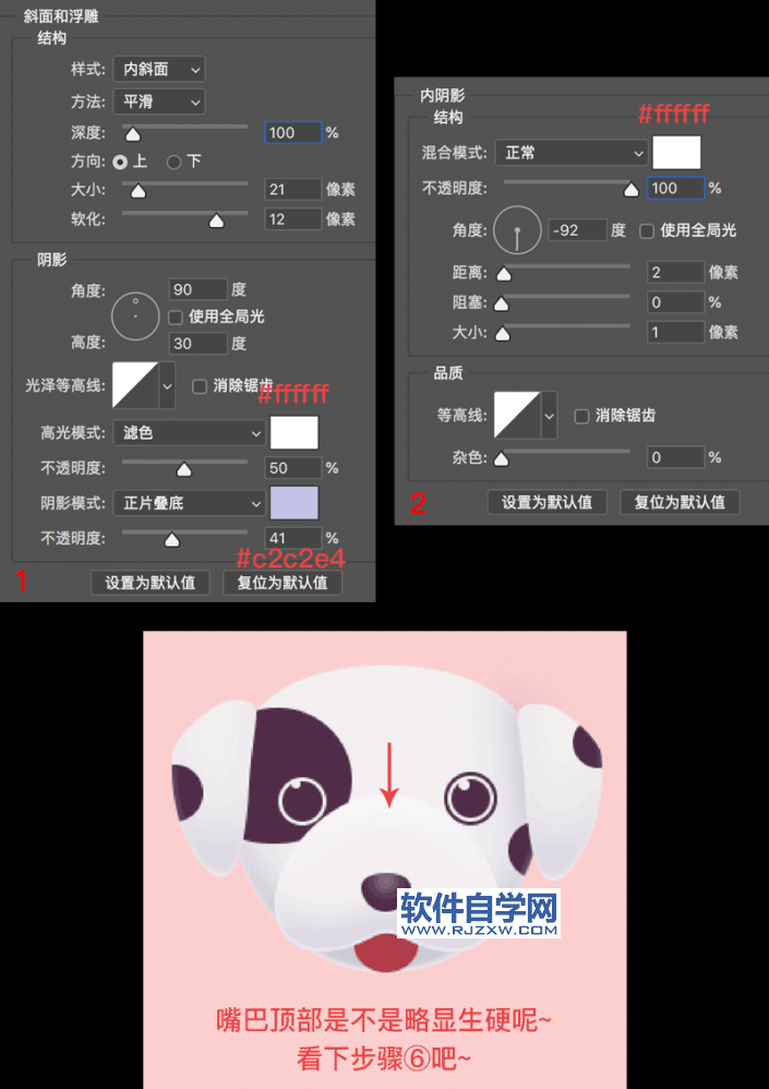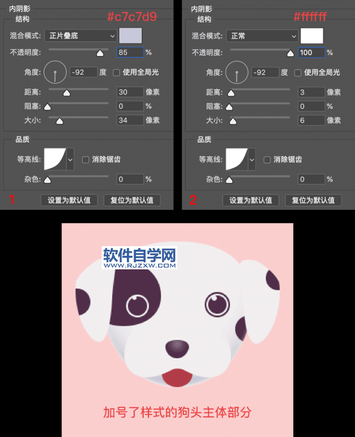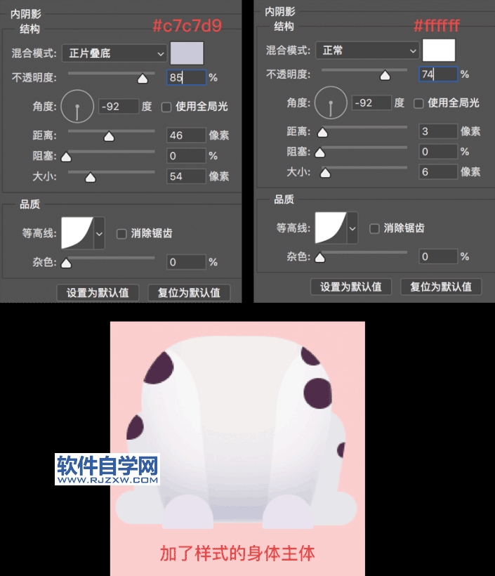3、先给身体主体加图层样式。 其实在给狗头加图层样式的时候,会发现加了大阴影配合细腻的高光的形状会看起来更立体更偏轻写实风格。是不是觉得这种风格很赞呢!