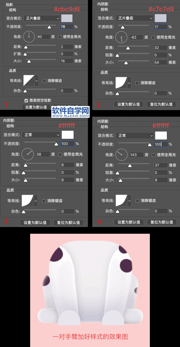 5、再给手臂加图层样式,同样的只是展示左手臂的样式: