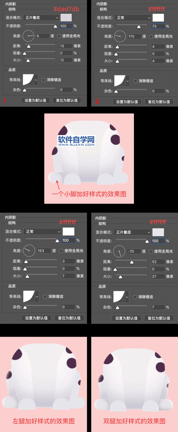 4、再给腿加图层样式了~我先加左腿的样式,然后右腿的样式就把角度改改就好了,这里就不做展示了!