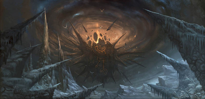 5、这里主要是对场景定光源(中间提亮四周压暗),中间用暖黄色的主光源提亮,旁边用蓝色冷光作对比,之所以这样处理是为了使中间的主题画面更突出。