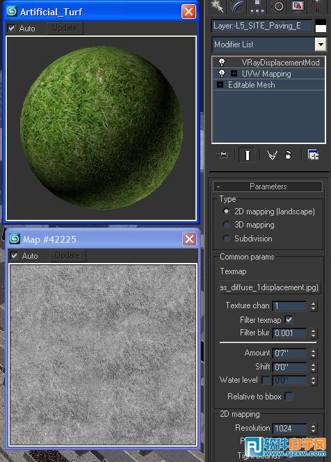 对于草地来说,我们使用vr置换中的2d贴图加以一定灰度的贴图来达到置换的效果。