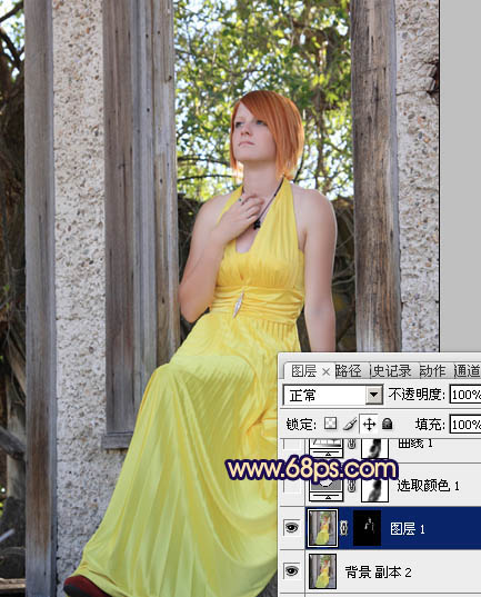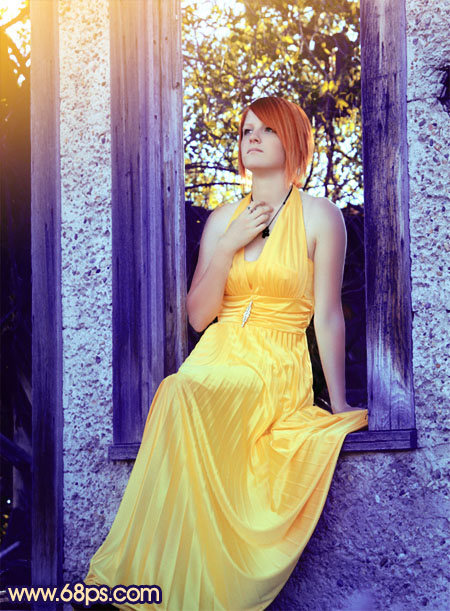 有墙壁或窗户的,比较适合调成暗蓝或蓝紫等色调。过程也较为简单,大致分析图片的色彩构成后,用可选颜色快速调出主色,人物部分适当调成暖色,这样对比起来,主体非常突出。