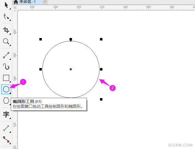 1、点击工具栏上椭圆形工具。绘制一个正圆出来。