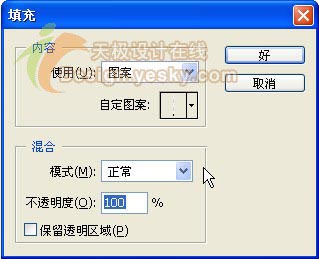 | 2、执行菜单栏中的“编辑”“定义图案”命令,将直线定义为图案。 3、新建一个文件。新建图层1,执行菜单栏中的“编辑”“填充”命令,设置填充对话框效果如图02所示, |