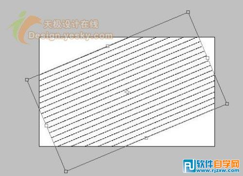 | 4、选择图层1,按Ctrl+T键添加自由变形框,适当旋转条纹角度,效果如图04所示。 |