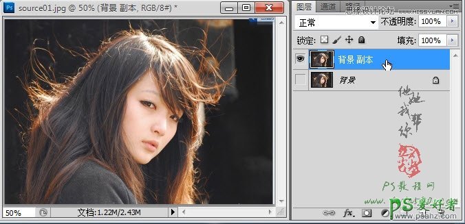 1、首先打开头像原图(本教程采用photoshop CS5制作,其它版本基本通用),将背景复制一个副本,如下图所示: