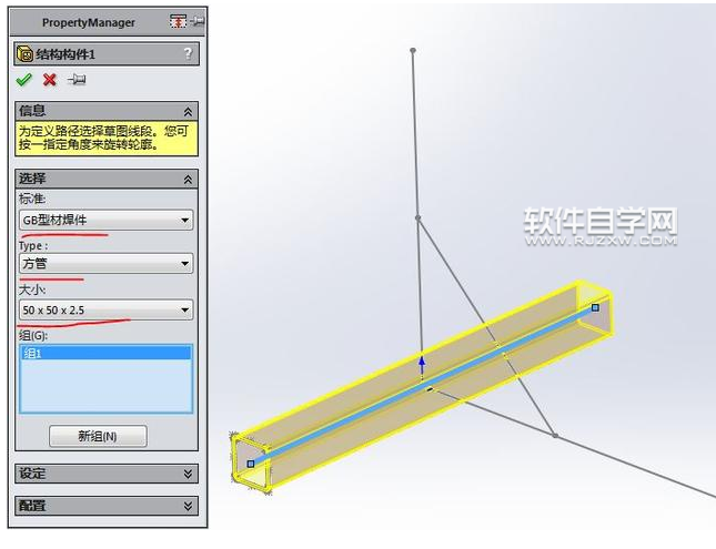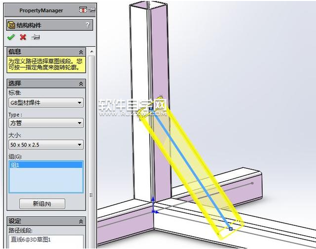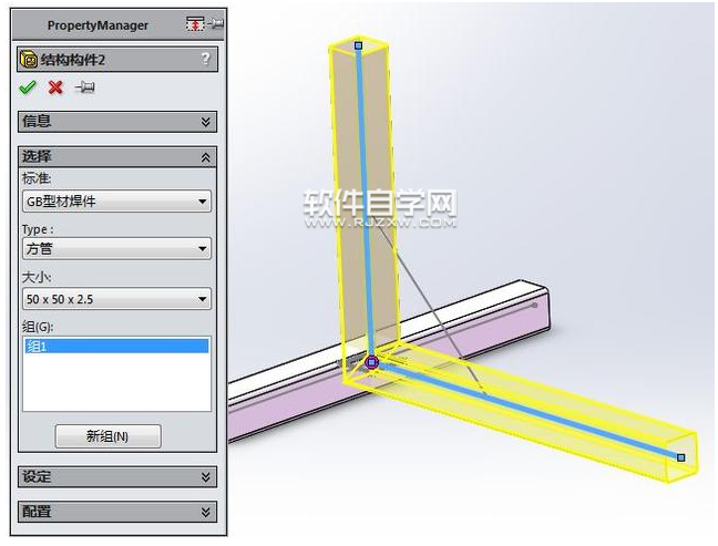 第3步、结构构件,GB型材焊件,方管:50*50*2.5mm。