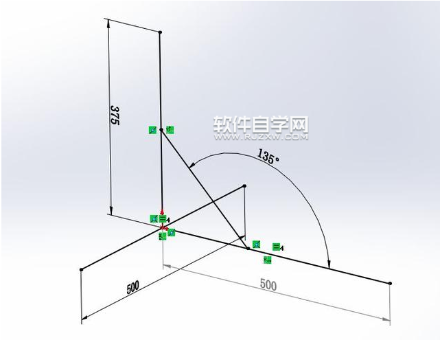 第2步、先画一个3d草图。除斜线外,其他三根线分别沿X、Y、Z轴约束。