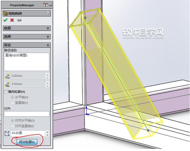 第6步、点找出轮廓,角度45度.
