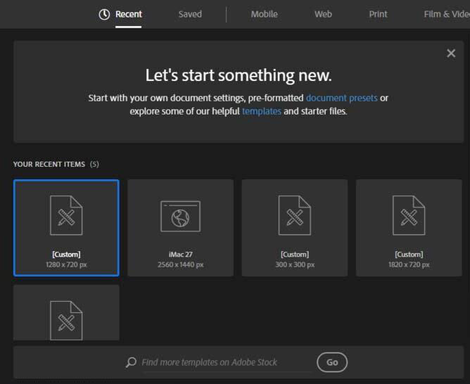 第1步、打开AI软件,点击1280X720px,进入新的文档。