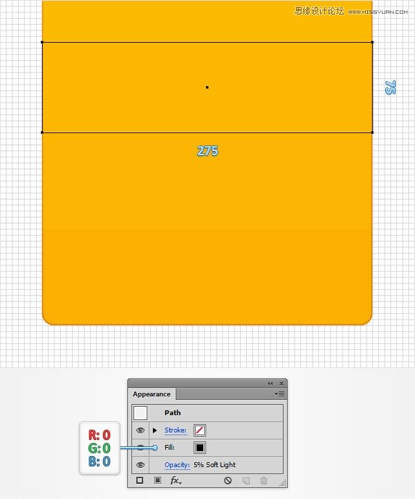 ③ 选择编辑>首选项>指南和网格,并在网格线输入5。使用矩形工具(M),创建一个275 *10px的矩形,确保它没有设置描边颜色,然后选择填充.