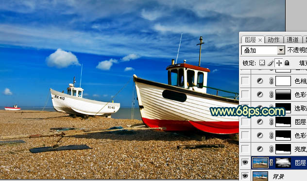 一、打开原图素材,按Ctrl + J 把背景图层复制一层,图层混合模式改为“叠加”,加上图层蒙版,用黑色画笔把不需要加强的部分擦出来,效果如下图。