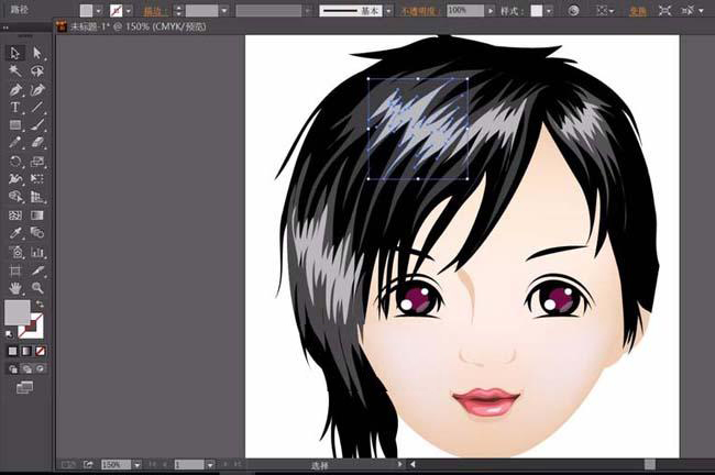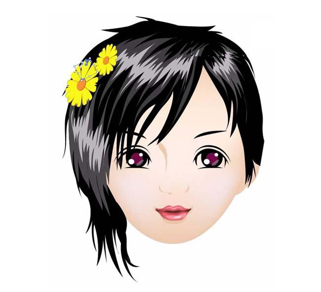 第6步、然后给头发填充黑色还有白色高光效果如下:
