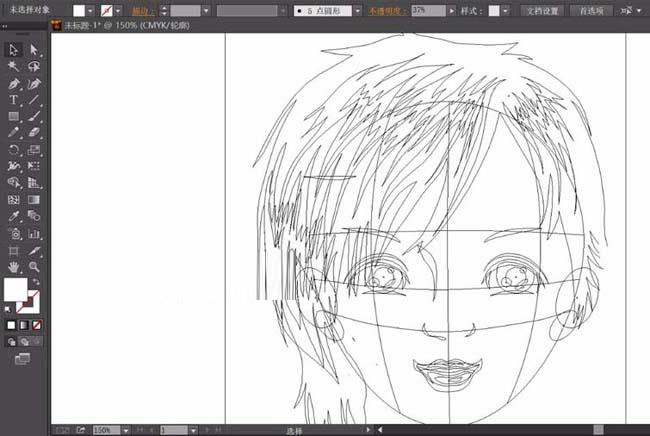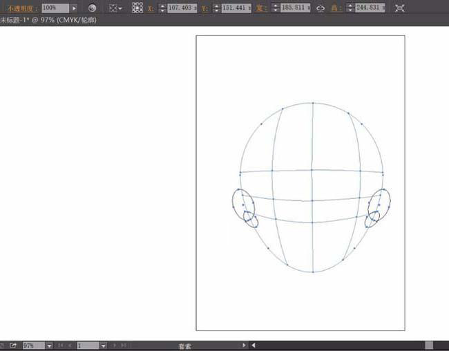 第1步、打开AI软件,新建空白文档,绘制人物的头部出来,效果如下: