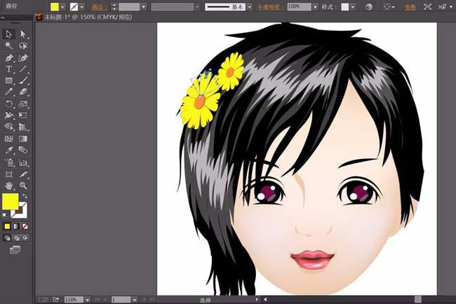 第7步、然后绘制一个黄色花朵出来,效果如下: