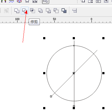 第三步、选中两条线再选中圆,再按修剪,如下图: