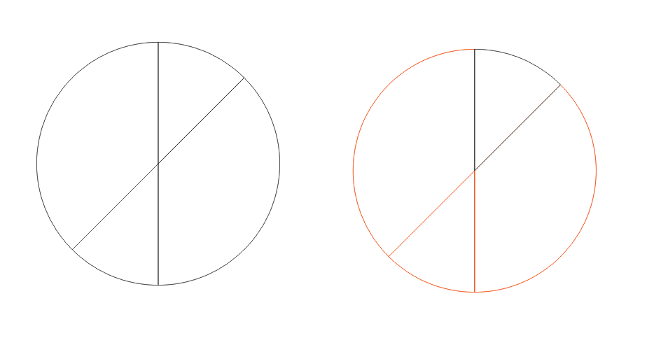 第四步、删除两条线得到得到下左图,CTRL+K打散此图。删除红线部分。