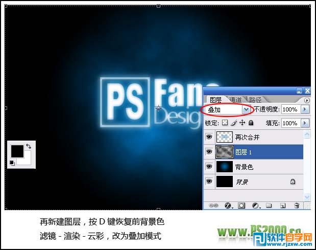 | 6、再新建图层,按“D”键把前背景色恢复到默认的黑白。执行:滤镜 > 渲染 > 云彩,确定后把图层混合模式改为“叠加”,效果如下图。 |