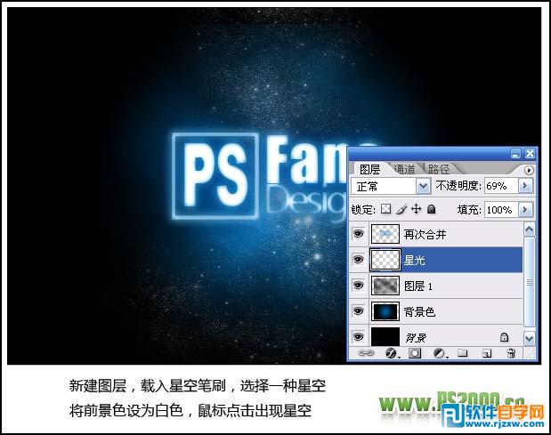| 7、新建一个图层,载入星光笔刷,没有的可以去网上下载。选择一种星光将前景色设为白色,用画笔刷出星光效果。 |