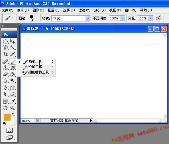 1、新建一个500*300的空白文档,选择常用工具栏中的画笔工具,如下图所示: