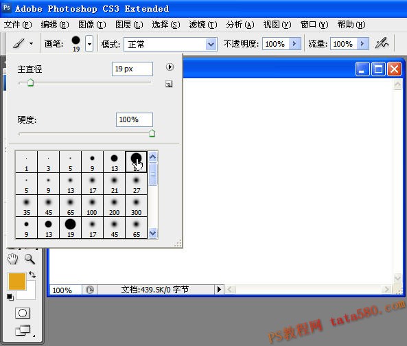2、选中画笔工具后,在菜单栏的下方会有画笔的常用属性,最常见的设置就是“主直径”和“硬度”,一个决定了画笔的大小,一个决定了画笔的边缘过渡效果: